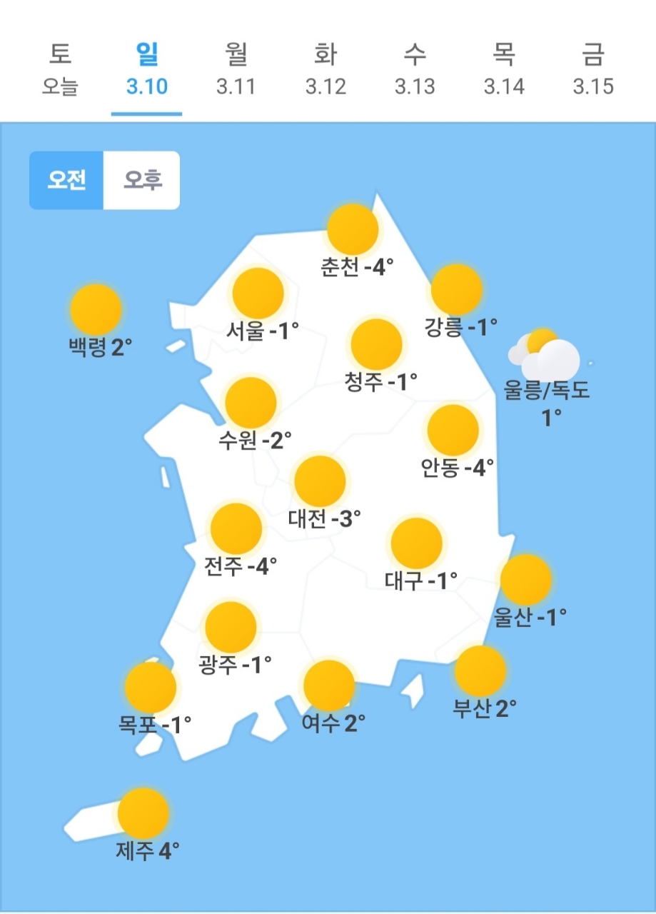 ✫춘천(☀)➠(☀) -4℃ ~ 11℃