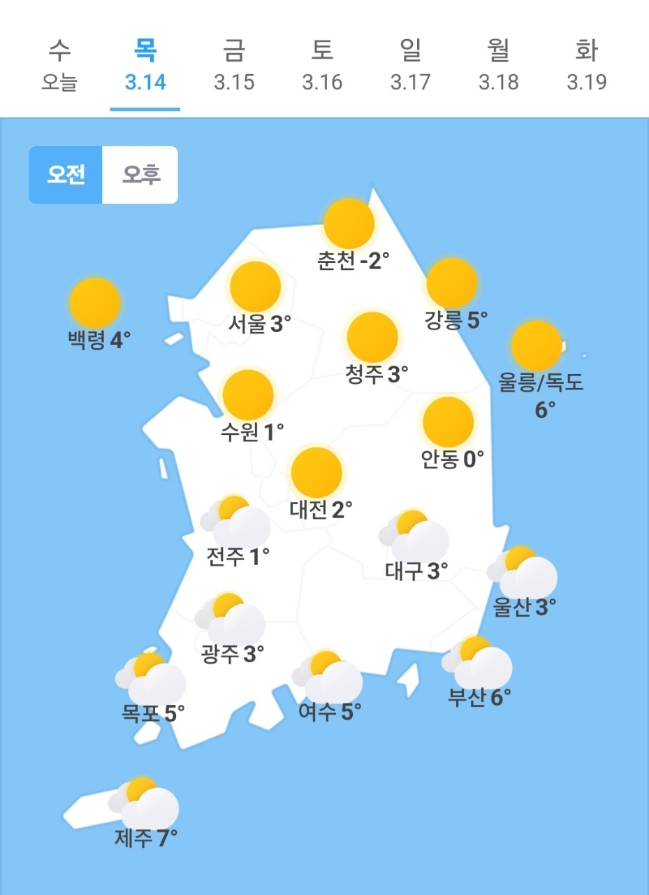 ✫춘천(☀)➠(☀) -2℃ ~ 15℃