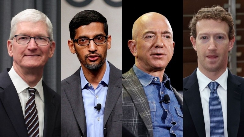 왼쪽부터 팀쿡 애플 CEO, 순다르 피차이 구글 CEO, 제프 베이조스 창업자 겸 회장, 마크 저커버그 메타 CEO