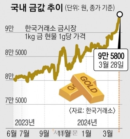 → 28일 한국금거래소의 금 한 돈(3.75g) 가격 역대 40만 4000원으로 역대 최고.