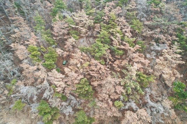 ▲재선충 3차 확산... 경주일대 재선충으로 말라 죽은 소나무 숲