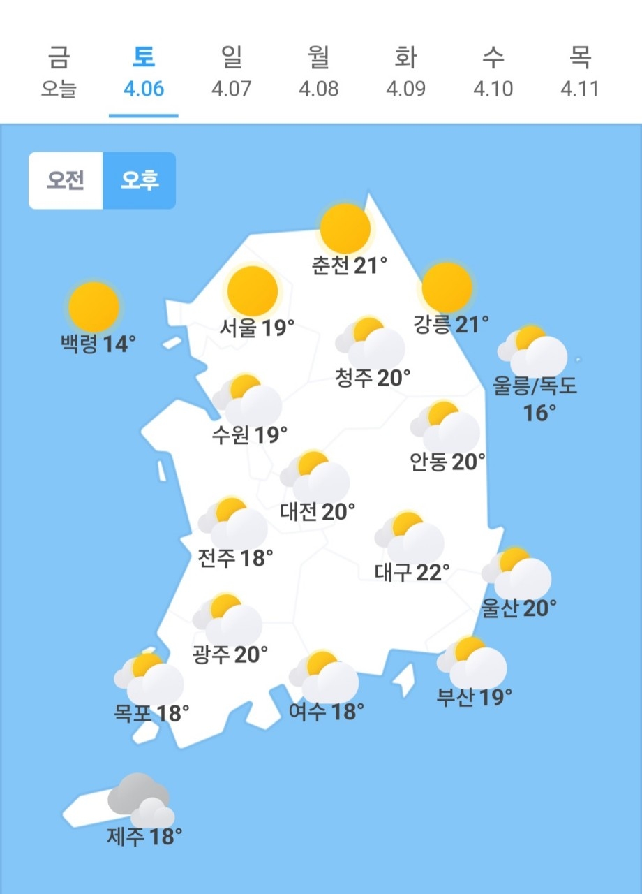 ✫춘천(☀)➠(☀) 5℃ ~ 21℃