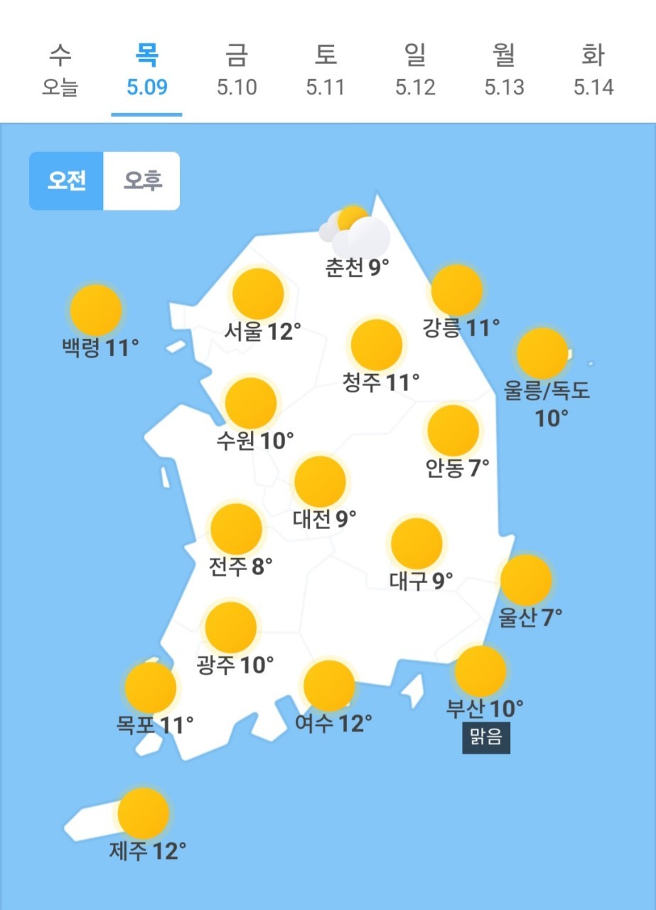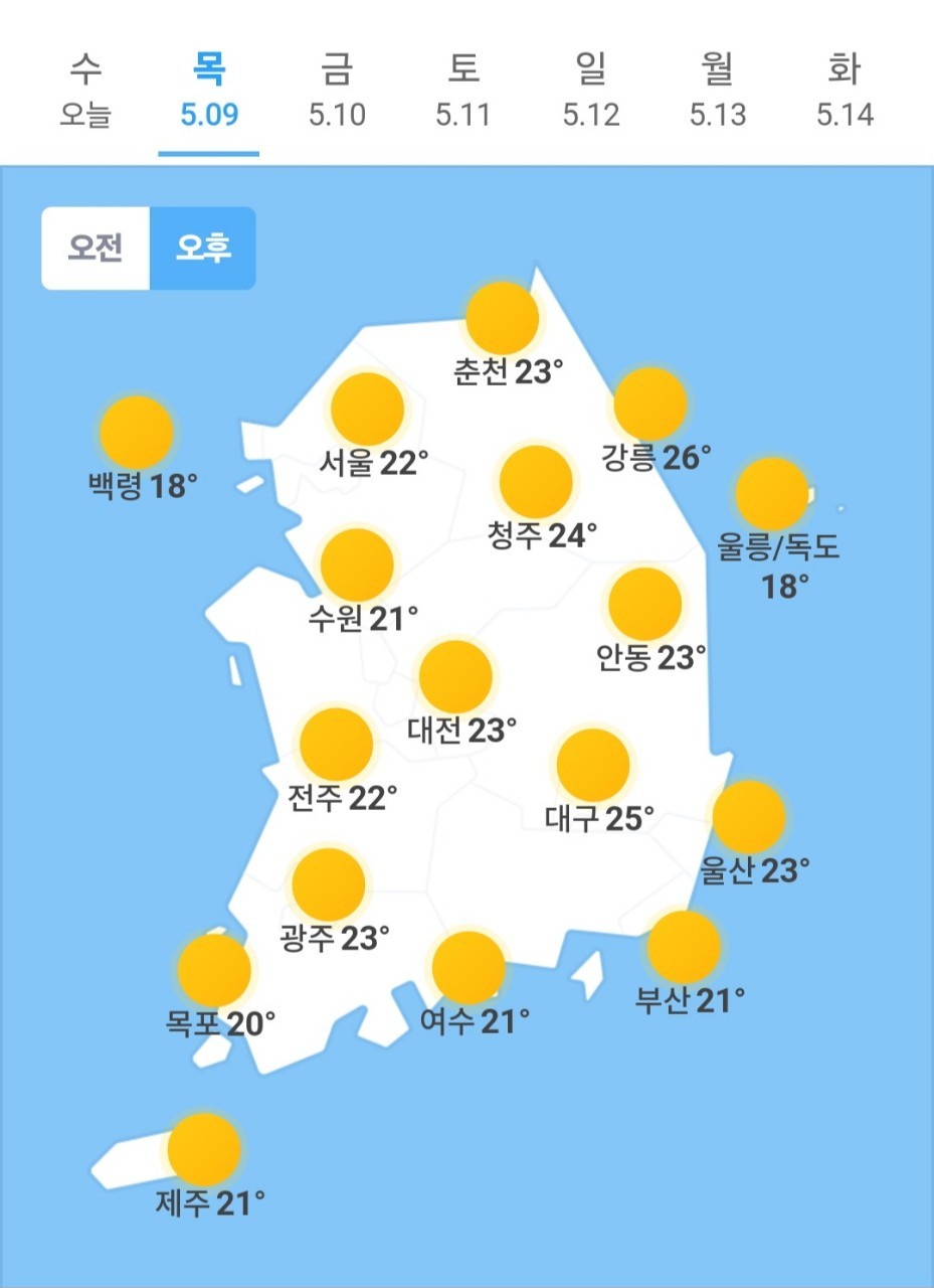 ✫울산(☀)➠(☀) 7℃ ~ 23℃