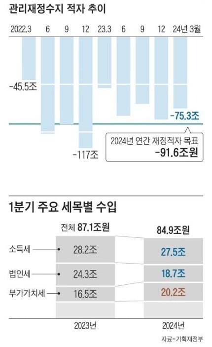 6. 올해 1분기 나라 살림 적자 75.3조원으로 역대 최대