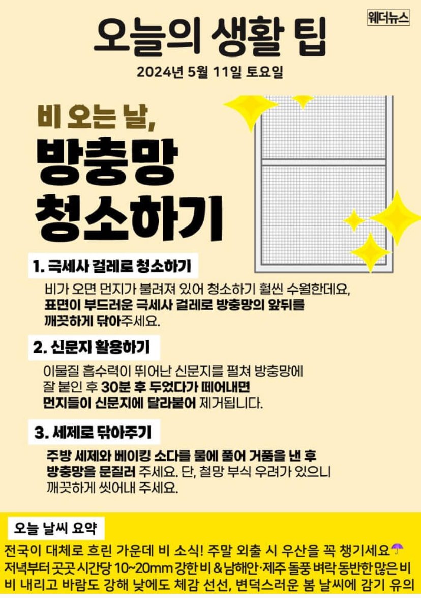 강수의 영향으로 전국이 '좋음'∼'보통'
