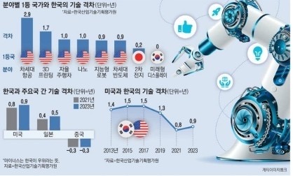 2.첨단산업 분야에서 한국의 기술 경쟁력이 갈수록 경쟁국에 뒤쳐지고 있는 것으로 나타났습니다.