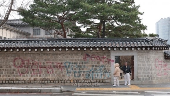 ▼경복궁 담장 낙서... 불법 영상 사이트 홍보위해 300만원 주고 시킨 것