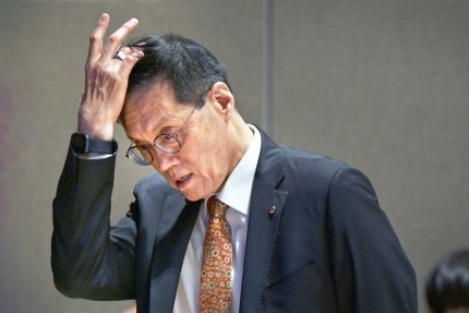 이 총재가 기자간담회에 참석해 머리를 쓸어 올리고 있다. 사진공동취재단