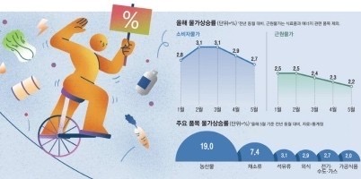 소비자물가 상승률은 지난해 10월 3.8%에서 꾸준히 하락해 4월 2.9%, 5월은 2.7%로 떨어졌습니다.