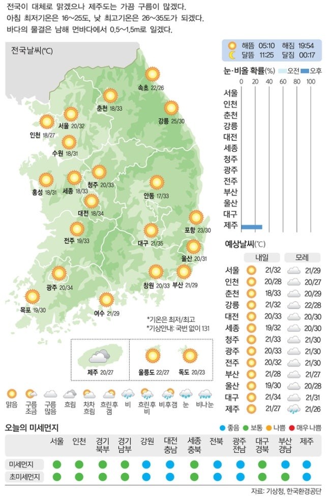 ▼오늘도 한여름 더위. 서울 32도, 대구 35도