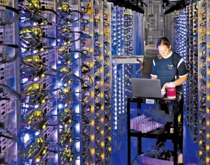 구글의 한 데이터센터에서 직원이 업무를 보고 있다. 구글, 마이크로소프트 등 대형 기술기업들이 인공지능(AI) 인프라인 데이터센터 증설에 공격적으로 나서면서 관련 전력 사용이 급증하고 있다. /구글 제공