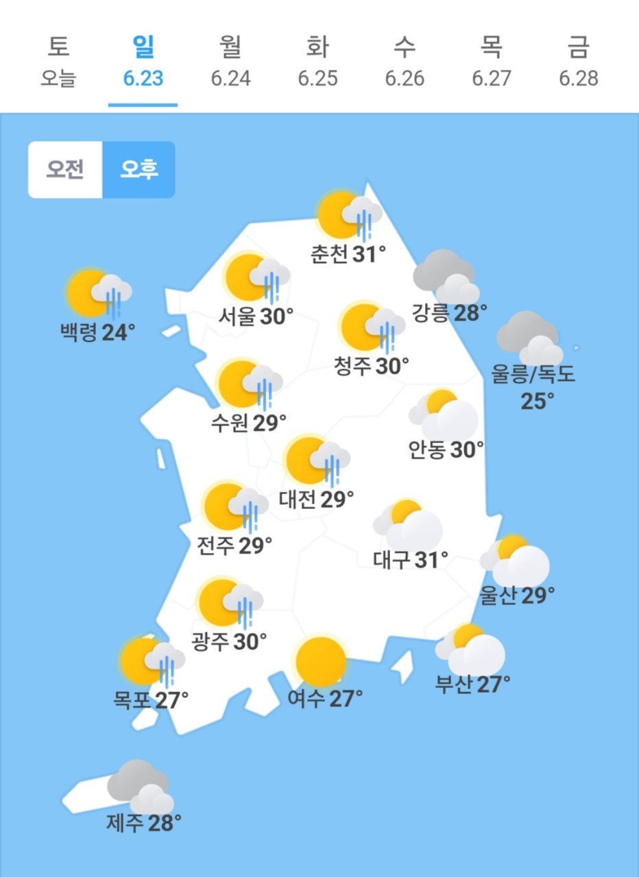 ✫청주(🌦)➠(🌦) 23℃ ~ 30℃