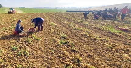 지난 19일 전남 영광의 한 감자밭에서 농민과 외국인 근로자들이 35도를 웃도는 폭염 속에 감자를 수확하고 있다. 록야 제공