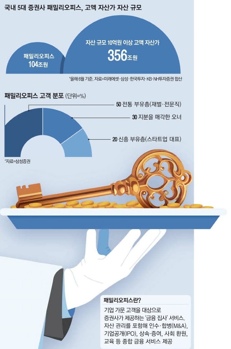 2. 고액 자산가를 대상으로 한 자산관리 서비스 ‘패밀리오피스’ 시장이 급성장하며 국내 시장 규모가 100조원을 넘어섰습니다.