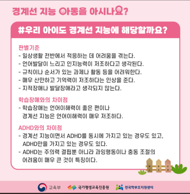 교육부, 정부 최초의 종합대책인 ‘경계선지능인 지원 방안’ 발표.(경향)