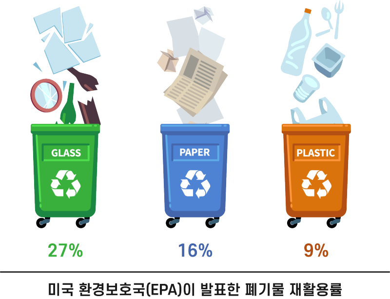 6. ‘재활용을 믿지 말자’ 플라스틱 천국 미국의 '일회용 거부' 바람 → 미국 프라스틱 재활용율, 1980년 0.3%에서 2000년 5.8%, 2018년 기준으로도 8.7%에 불과. 차라리 쓰지 말자 바람.(한국)▼