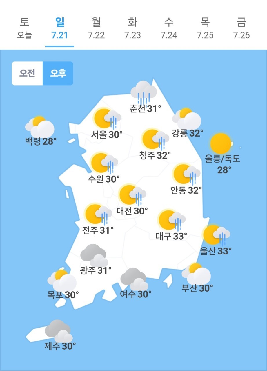 ✫청주(☔)➠(🌧) 26℃ ~ 32℃