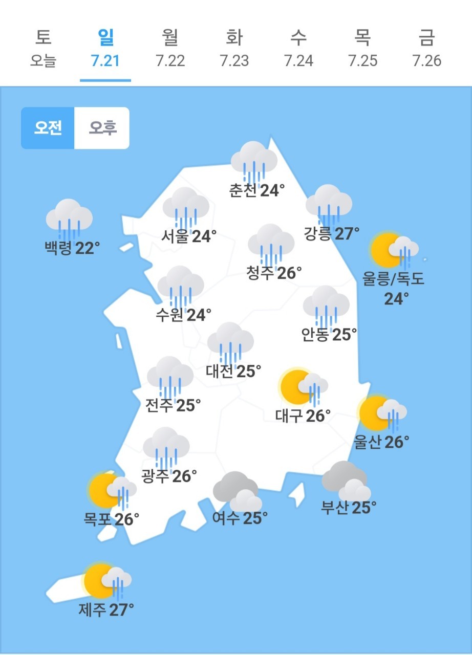 | 오늘의🌞☔️☃️ 날씨, 2024년 7월 22일 월요일 (0) | 2024.07.21 |