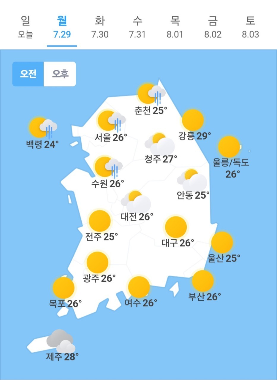 | 오늘의🌞☔️☃️ 날씨, 2024년 7월 28일 일요일 (0) | 2024.07.28 |