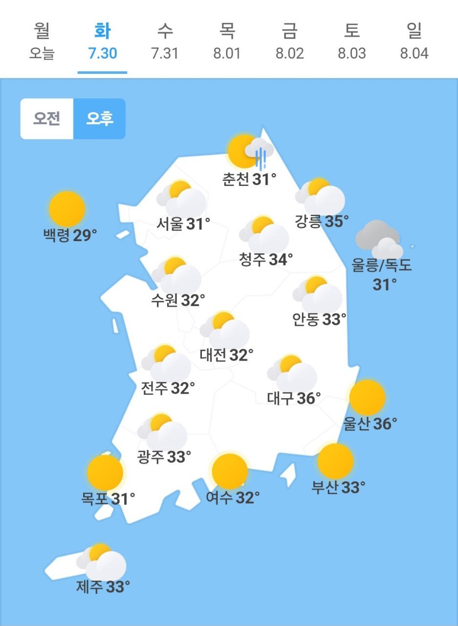 ✫울산(☀)➠(☀) 25℃ ~ 36℃