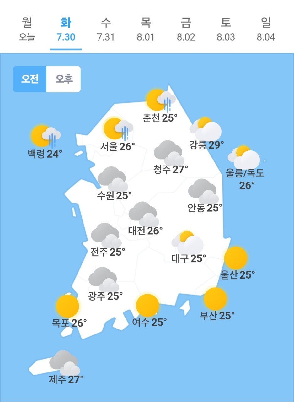 | 오늘의🌞☔️☃️ 날씨, 2024년 7월 29일 월요일 (0) | 2024.07.29 |