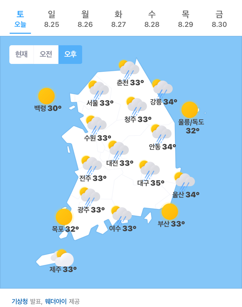 ✫서울(⛈)➠(☀) 25℃ ~ 33℃