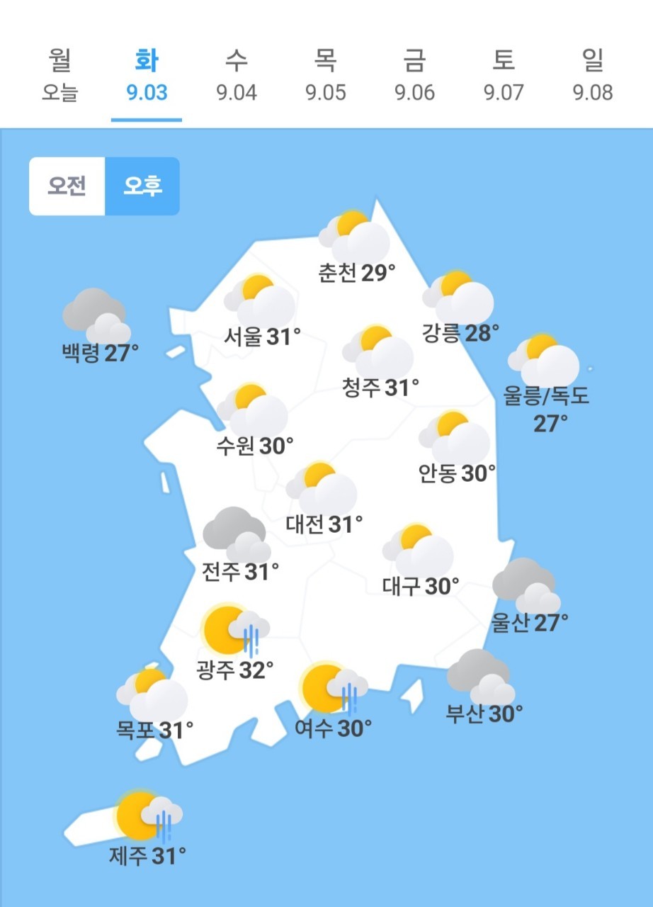 ✫광주(🌧)➠(🌧) 23℃ ~ 32℃