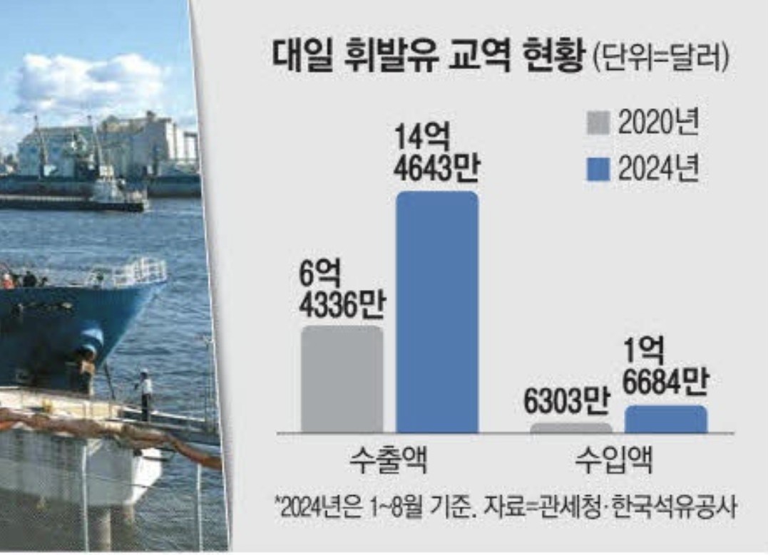 지난 13일 GS칼텍스의 SAF 수출선이 일본 지바항 부두에서 나리타공항 항공유 탱크와 연결돼 있다. GS칼텍스