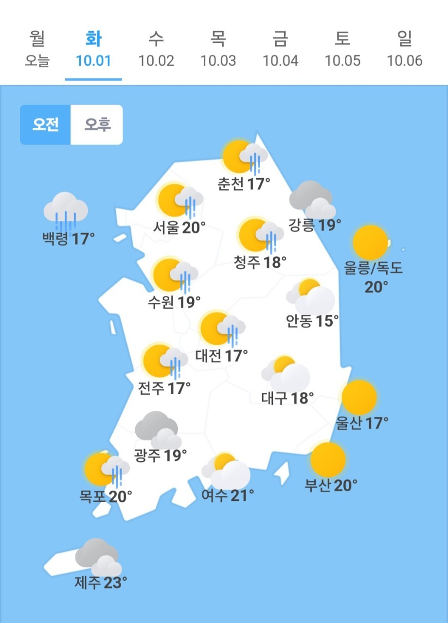 ✫대전(🌦)➠(🌦) 17℃ ~ 23℃