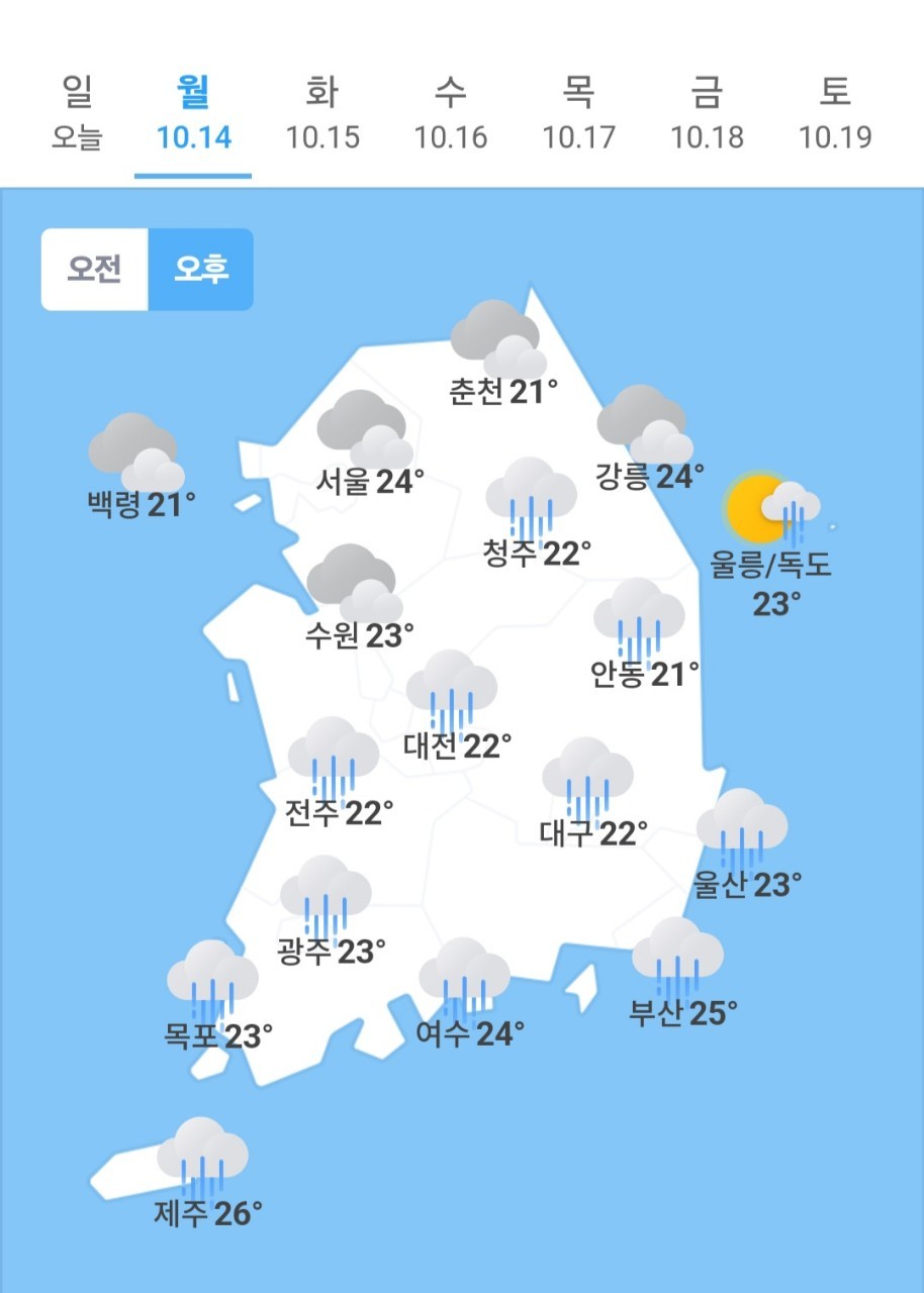 ✫대구(☁️)➠(☔) 16℃ ~ 22℃