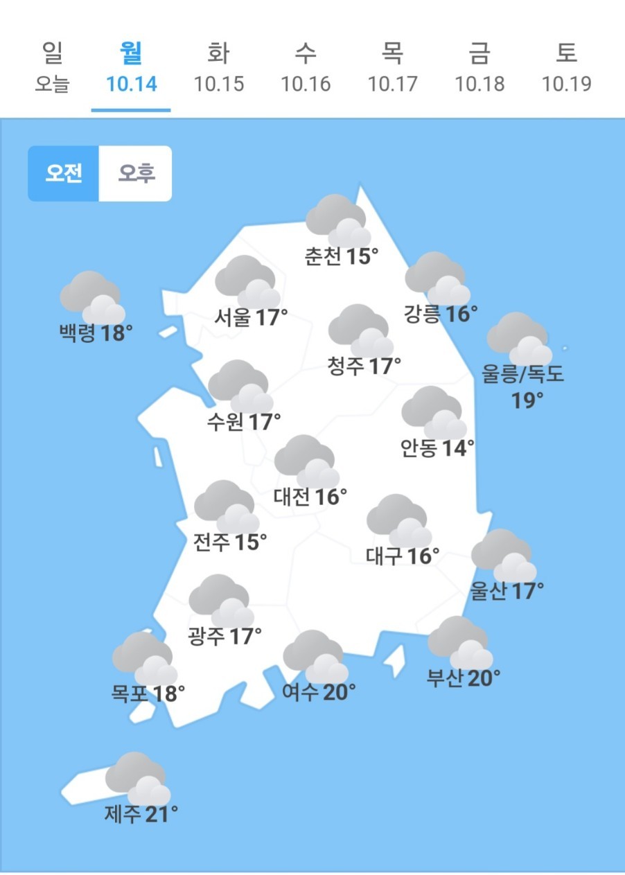 ✫수원(☁️)➠(☁️) 17℃ ~ 23℃