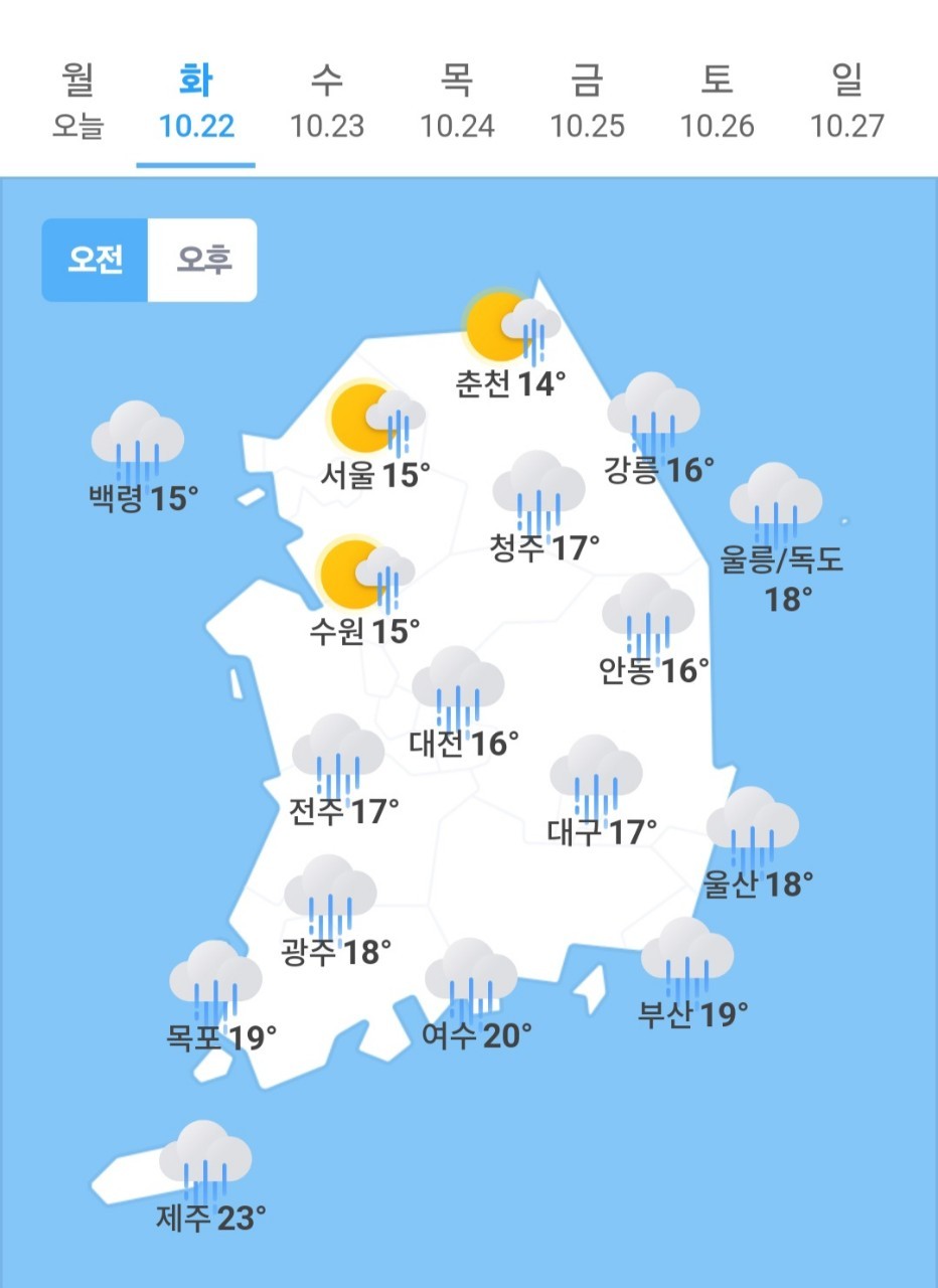✫수원(🌧)➠(☔) 15℃ ~ 19℃