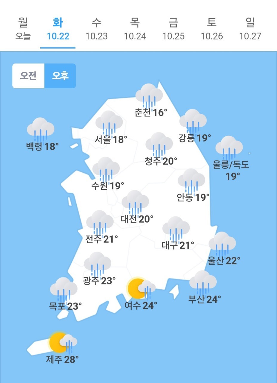 ✫제주(☔)➠(☔) 22℃ ~ 26℃