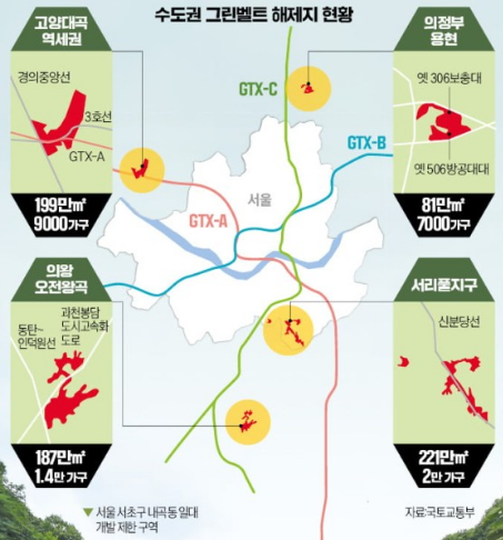 1. 서울 서초구 내곡동과 우면동 일부 지역 등 그린벨트에 2만가구급 소형 신도시가 생길 예정입니다.