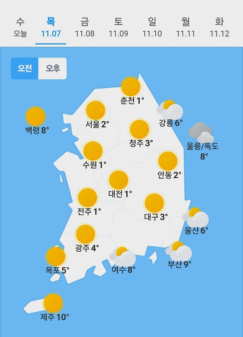✫청주(☀)➠(☀) 3℃ ~ 15℃-