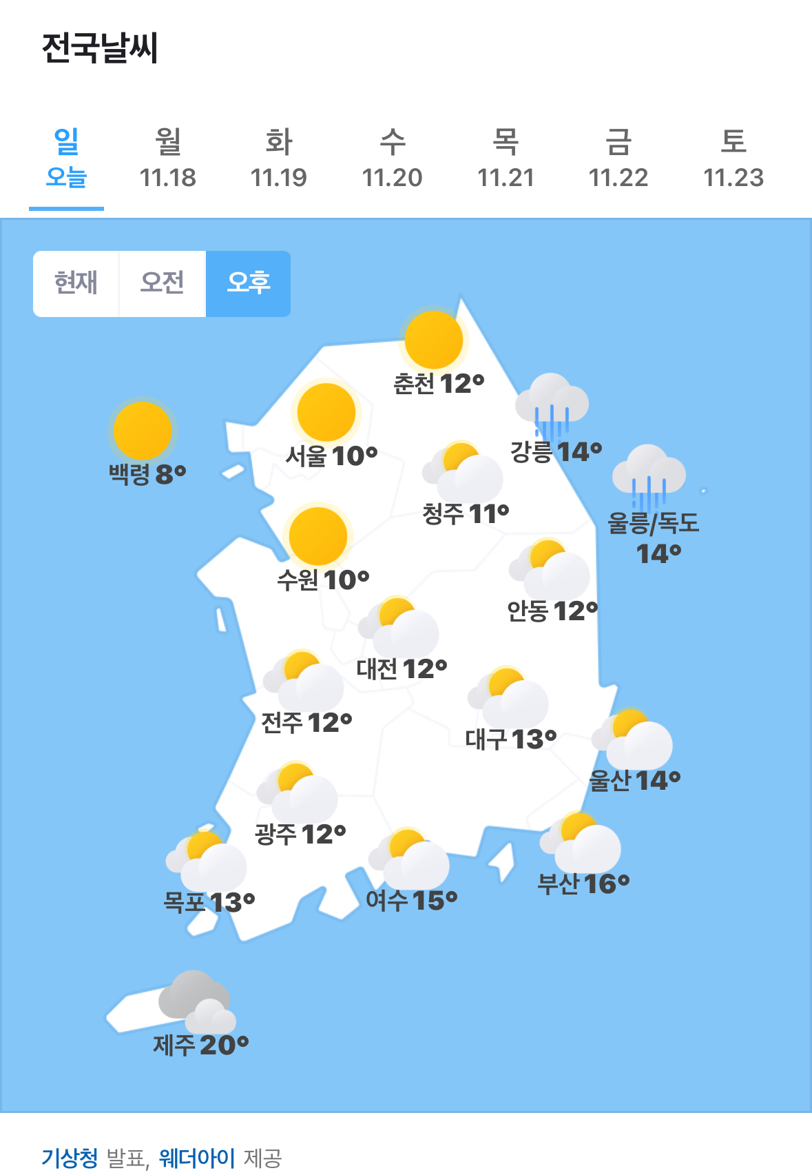 ✫춘천(⛅)➠(☀) 7℃ ~ 12℃