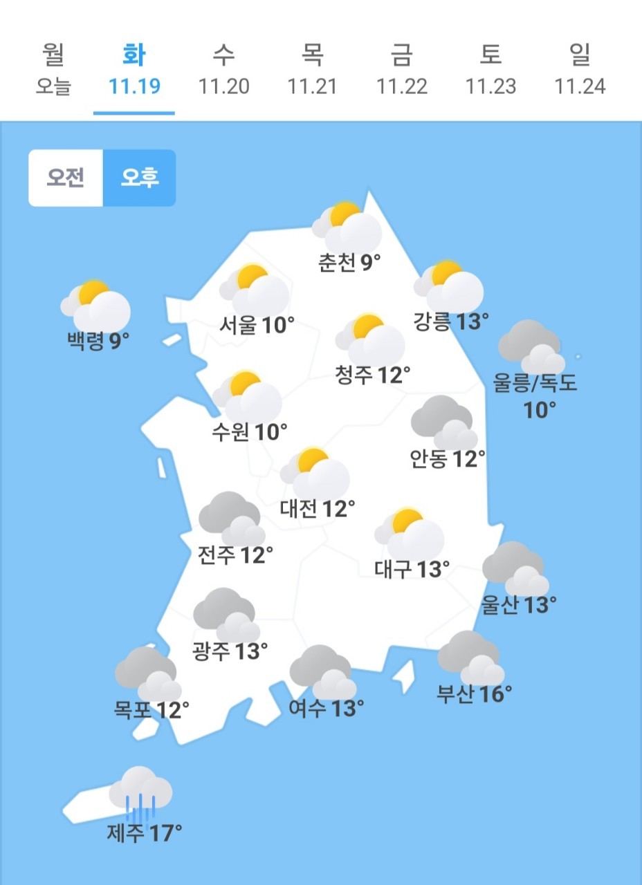 ✫부산(☁️)➠(☁️) 7℃ ~ 16℃