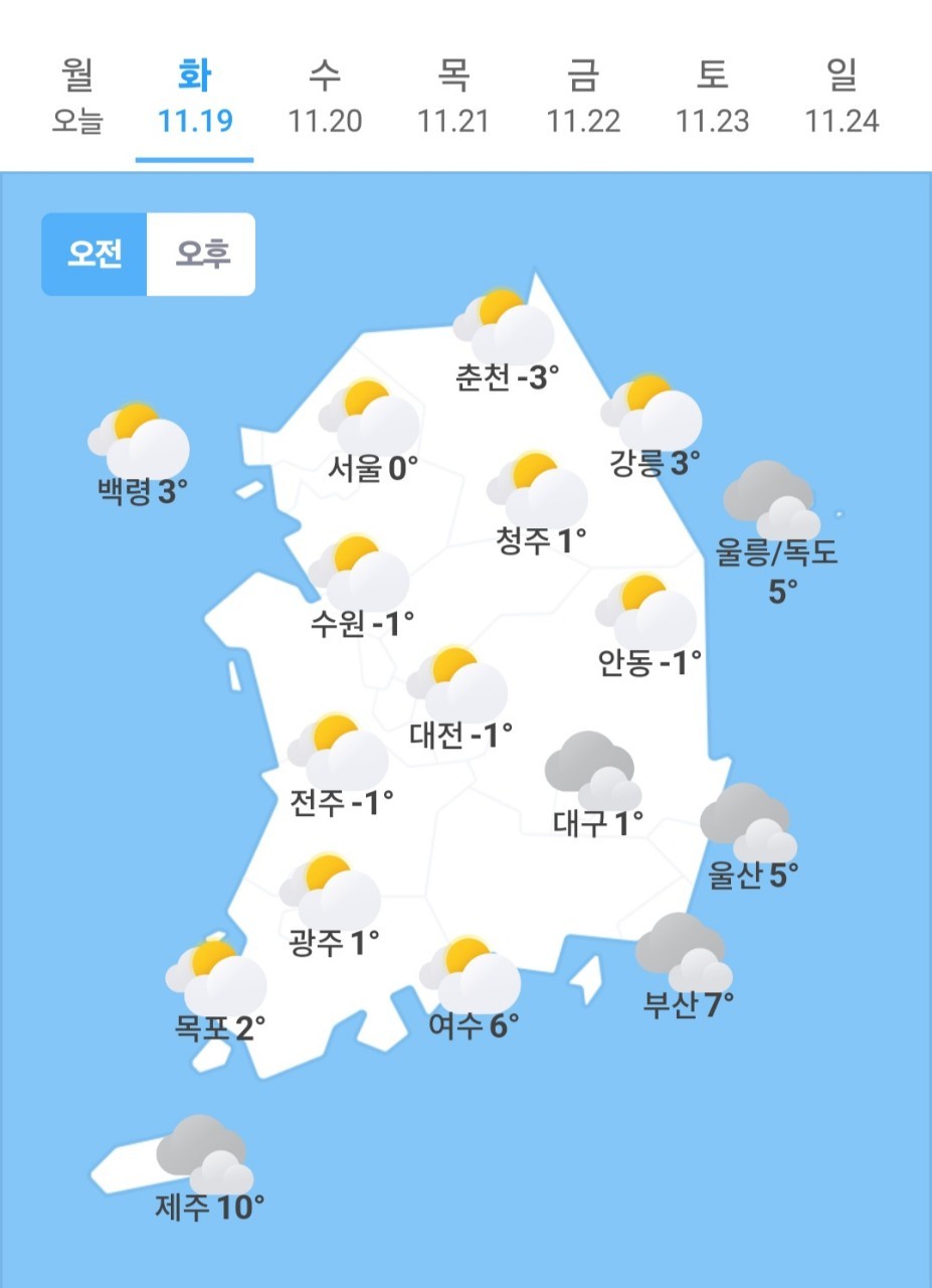 | 오늘의 날씨 🌞☔️☃️ , 2024년 11월 18일 월요일 (0) | 2024.11.18 |
