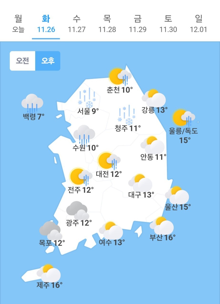✫청주(☔)➠(🌦/☃️) 10℃ ~11℃