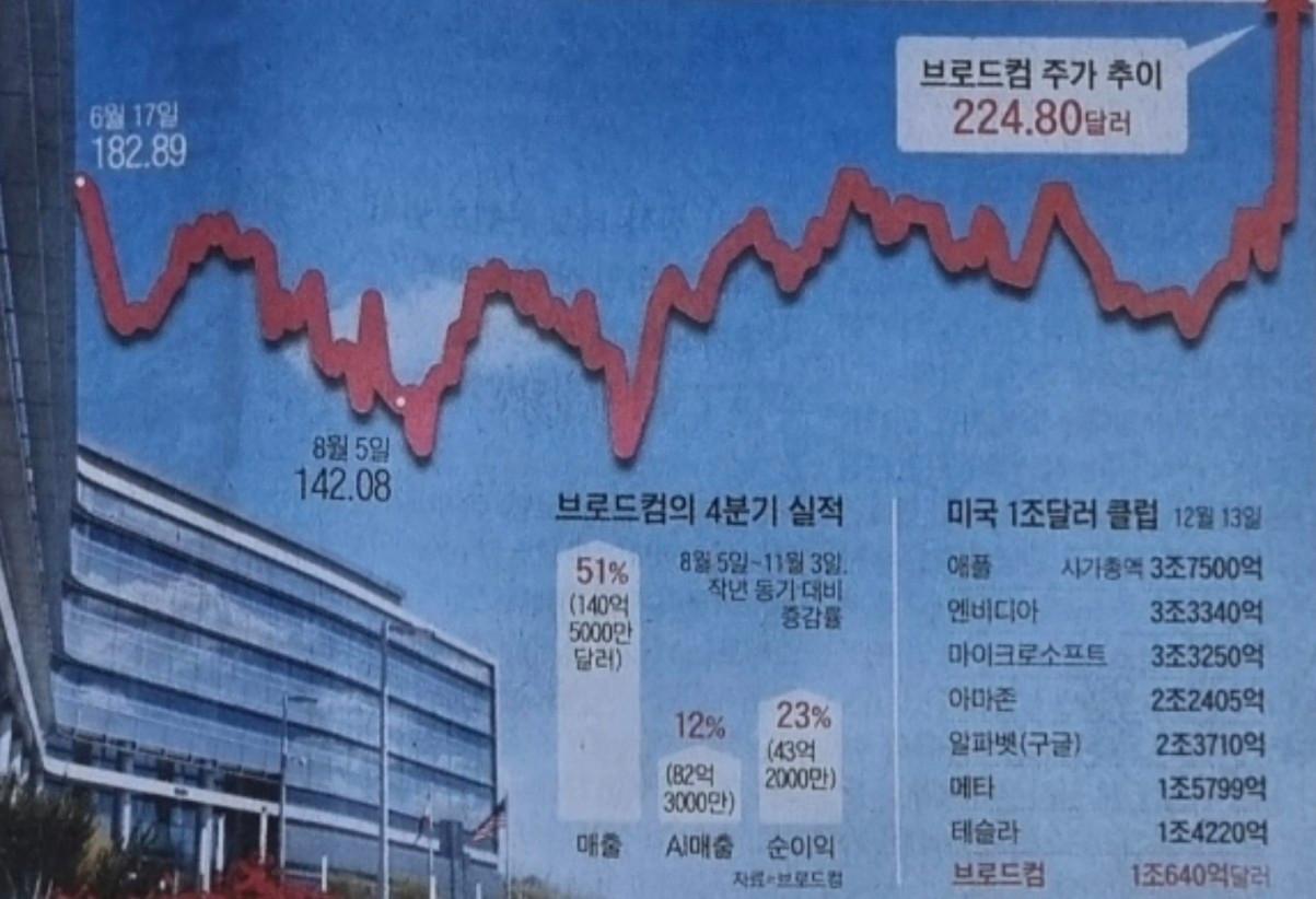 5. 미국 대표 반도체 기업 중 하나인 브로드컴이 인공지능용 반도체 부문에서 엔비디아의 대항마로 떠올랐습니다.
