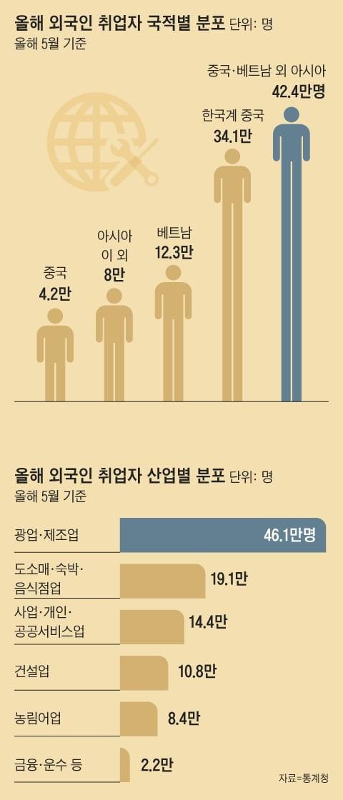 3. 17일 통계청이 발표한 ‘이민자 체류 실태 및 고용조사 결과’에 따르면 올해 5월 기준, 국내에서 일하는 외국인 취업자 수가 101만명을 기록해 처음으로 100만명을 돌파했습니다.