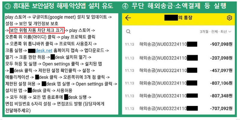 화상 면접 보기 위해 필요하다며 악성 앱 깔도록 유도한 뒤 해외송금과 소액결제로 돈 빼내가
