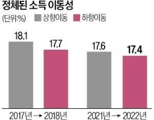 한 해 동안 소득이 늘어 계층(소득분위)이 오른 국민은 10명 중 2명도 안 되는 것으로 나타났다. 소득 상위 20% 계층으로 한번 들어가면 꾸준히 경제적 지위를 유지하는 것으로 조사됐다.