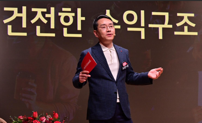 LG전자 조주완 CEO가 지난 17일 서울 여의도 LG트윈타워에서 올해를 마무리하는 ‘CEO 펀 토크(F.U.N. Talk)을 열고, 구성원들에게 2025년 회사가 마주할 글로벌 경영환경의 변화와 이에 대응하는 사업전략 방향을 상세히 공유했다. [사진 제공 = LG전자]