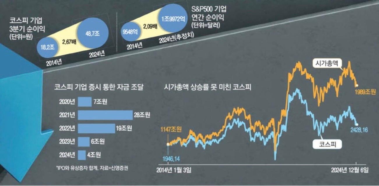 ◇코스피, 반·차 순이익 늘었지만...10년간 상승률, S&P500 8분의1
