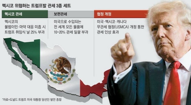 2. 매일경제신문이 멕시코에서 세번째로 큰 도시 몬테레이를 찾은 결과 도널드 트럼프 미국 대통령 당선인이 내세우는 관세 폭탄에 대한 우려가 기업인들 사이에서 짙게 퍼져 있었습니다.