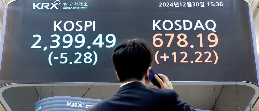 < 2024 증시 마지막까지 '우울' > 2024년 증시 폐장일인 30일 코스피지수는 5.28포인트(0.22%) 떨어진 2399.49에 마감했다. 뉴스1