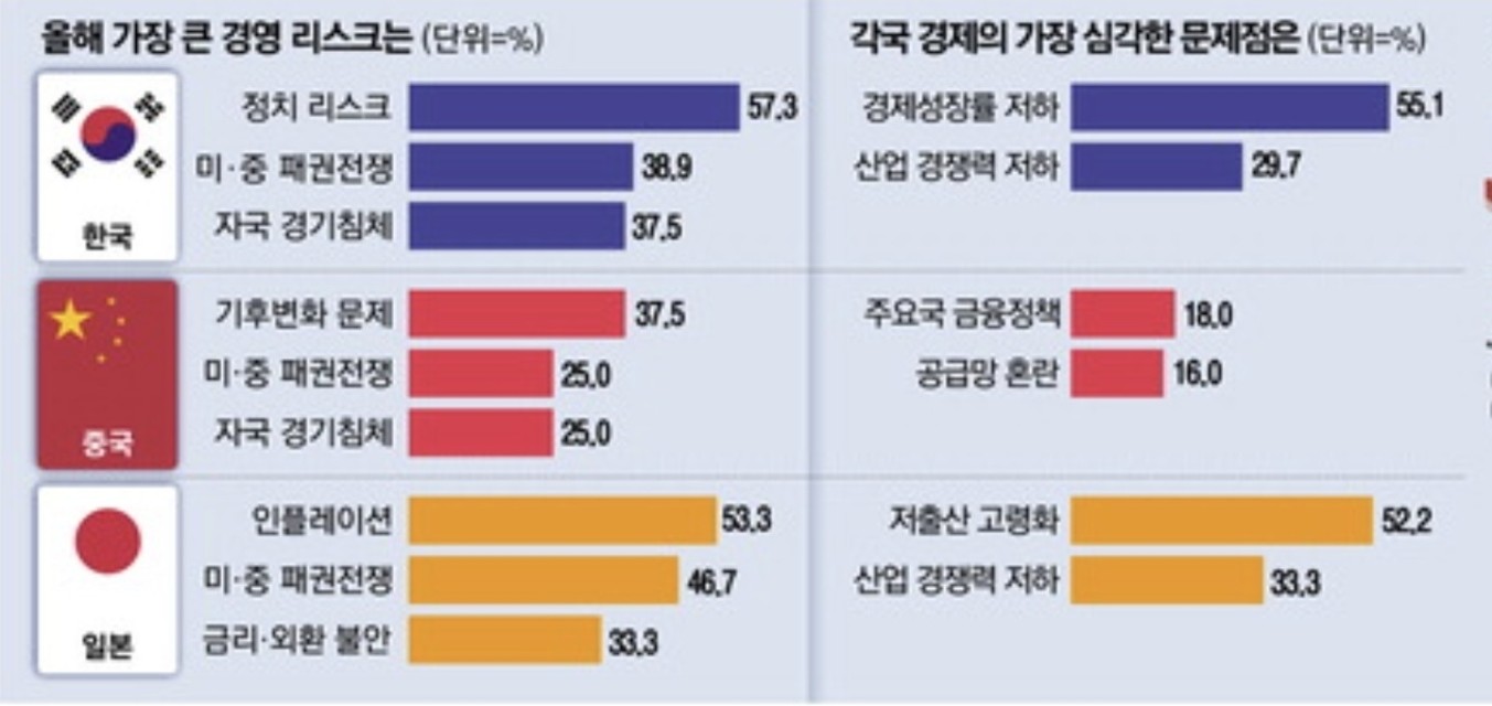 ◇中 "기후변화" 日 "인플레이션"...올해 경영 악화 요인으로 꼽아