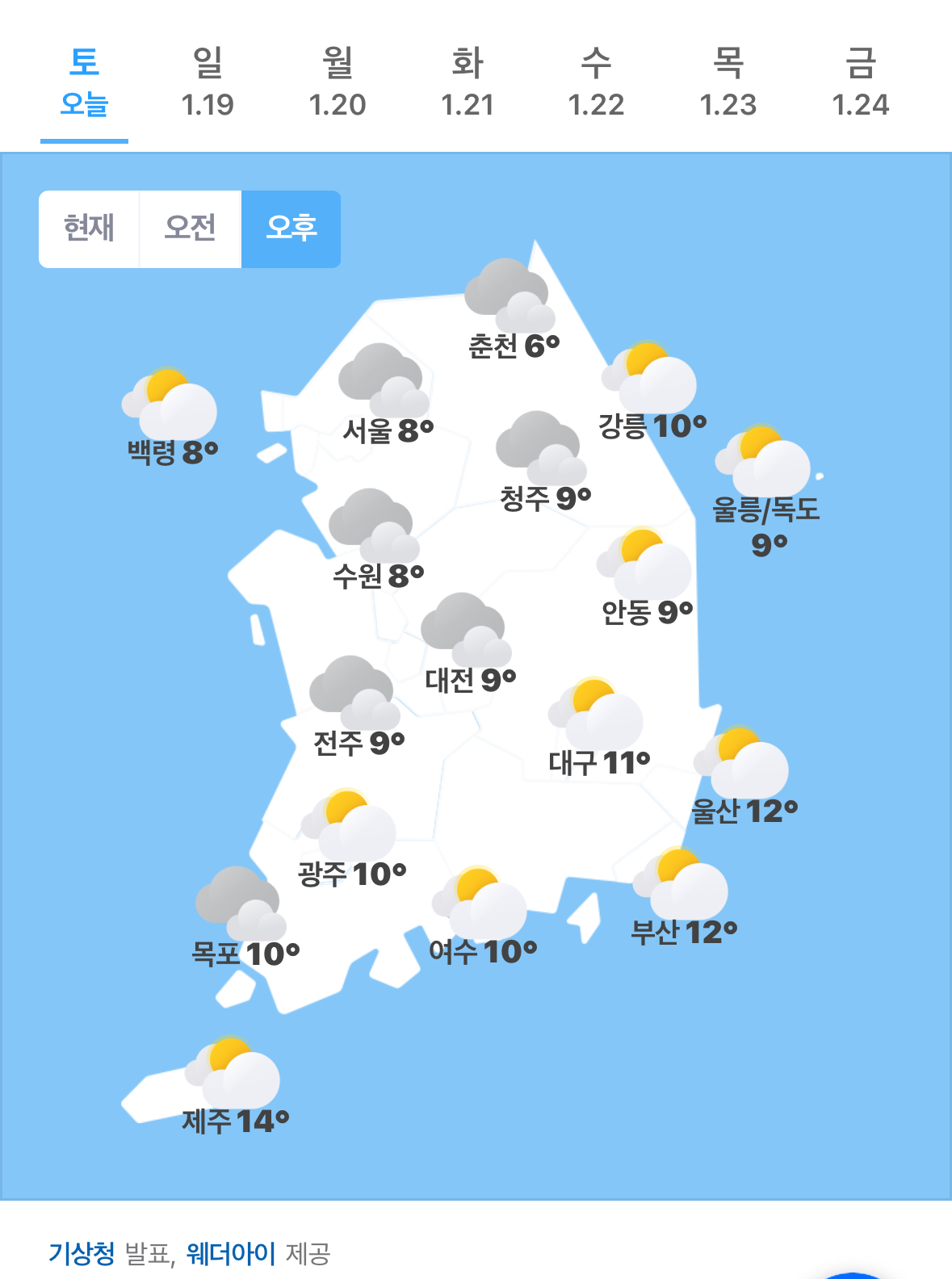 | 오늘의 날씨 🌞☔️☃️ , 2025년 1월 19일 일요일 (0) | 2025.01.19 |