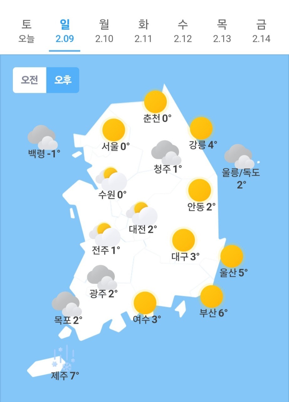 ✫부산(☀)➠(☀) -5℃ ~ 6℃